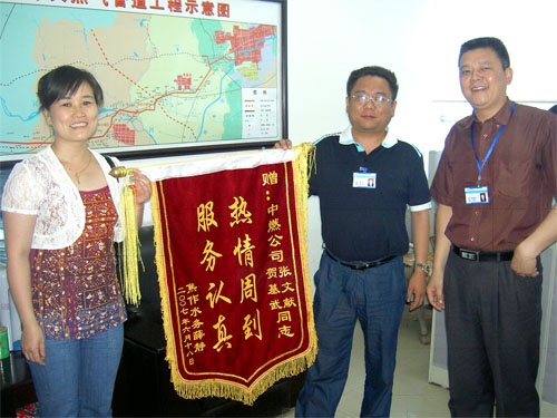 望著汗流浹背連水也顧不得喝一口的張文獻(xiàn)部長(zhǎng)一行人,該用戶內(nèi)心充滿了感激之情。隨后,特制定了一面錦旗送到公司,以表達(dá)她內(nèi)心的感激之情。