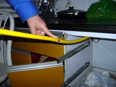 1月14日晚18:40左右,濟源公司客戶服務部孫海法部長于接到報修電話5分鐘后來到劉先生家中,看到劉先生家的廚房玻璃窗戶已全部被震掉,櫥柜隔斷及客廳門上的玻璃有部分受損,其家人的臉部也被輕微燒傷。約10分鐘后,濟源公司副總經理孟和平、杜集中及市住建局安全科負責人也相繼趕到。經過現場勘查,維修人員確認爆炸系因劉先生家私自安裝并埋設在櫥柜內的天然氣采暖爐連接管道遭老鼠噬咬造成燃氣泄露遇明火所致。值得慶幸的是事發時漏氣量尚較少,爆炸破壞力相對較小。