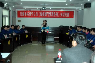 在濟源公司,一場精心籌備、多方參與的《城鎮燃氣管理條例》知識競賽活動再度在其干職員工間掀起了學習貫徹《條例》活動的新高潮。期間,經過部門內部選拔產生的21名參賽人員通過必答題、搶答題、風險題等環節的激烈角逐,展示了自己在《條例》內容學習過程中付出的努力及取得的收獲。濟源市安全生產監督管理局苗軍副局長、市公用事業管理局總支委員翟東方等政府部門領導應邀出席競賽,對濟源公司通過多種形式積極推動《條例》宣貫的做法給予了高度肯定。