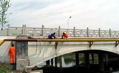 期間,針對架空管道排檢、維護(hù)過程中存在的無專業(yè)維護(hù)人員、無高空作業(yè)設(shè)施、無專門除銹及噴漆設(shè)備等困難,臨沂中燃公司員工在嚴(yán)格貫徹落實"安全第一、預(yù)防為主、厲行節(jié)約、綜合整治"方針的前提下,抽調(diào)巡線及門站工作人員,自己動手對輸配管網(wǎng)系統(tǒng)中的架空管道、門站露天設(shè)備等進(jìn)行了全面除銹防腐工作,有效提高了設(shè)備的耐腐蝕性和安全運行的可靠性,大大延長了設(shè)備的使用壽命。