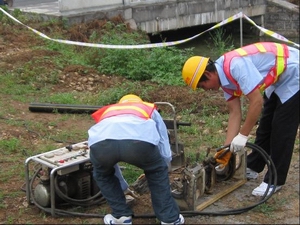 搶險人員正在準(zhǔn)備搶險、搶修工具