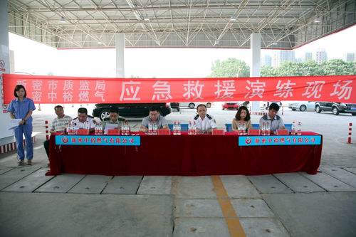 新密公司訊 6月14日,新密公司與新密市質監局、新密市公安消防中隊聯合舉行了加氣站消防演練。