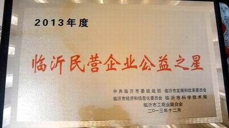 榮獲“沂蒙名商、臨沂民營(yíng)企業(yè)公益之星”稱號(hào)