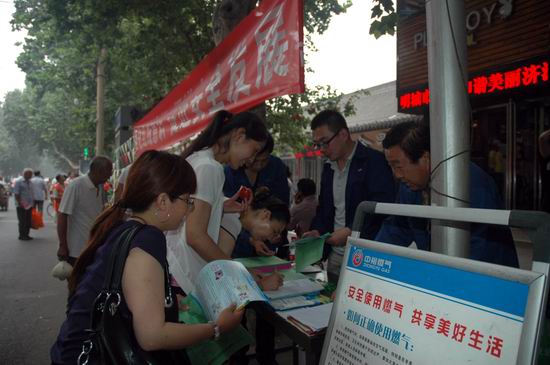 濟(jì)源公司訊 6月16日,根據(jù)濟(jì)源市安監(jiān)局、住建局對“安全生產(chǎn)月”活動(dòng)的部署,濟(jì)源公司組織安全宣傳小分隊(duì)來到市中心最繁華的湯帝路與宣化街交叉口,針對群眾展開了安全用氣知識(shí)宣傳。