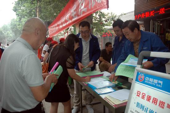 由于當(dāng)天系全市“安全生產(chǎn)月”集中宣傳活動(dòng),濟(jì)源公司安全宣傳小分隊(duì)不到七點(diǎn)鐘就早早來到指定地點(diǎn),為設(shè)置咨詢臺(tái)、宣傳版面、懸掛橫幅“搶占”有利位置。在本次宣傳活動(dòng)中,濟(jì)源公司還印制并向市民發(fā)放了《河南省城鎮(zhèn)燃?xì)夤芾項(xiàng)l例》等新版宣傳資料。