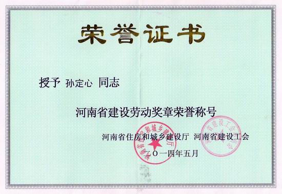 員工獲授“河南省建設勞動獎章”榮譽稱號