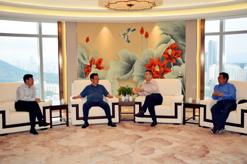 管理總部訊 4月20日下午,三門峽產業聚集區管委會主任朱強先生一行6人至管理總部考察,董事會王文亮主席、黎巖常務副總裁、賈琨副總裁、彭軍副總裁等集團領導參與接待。
